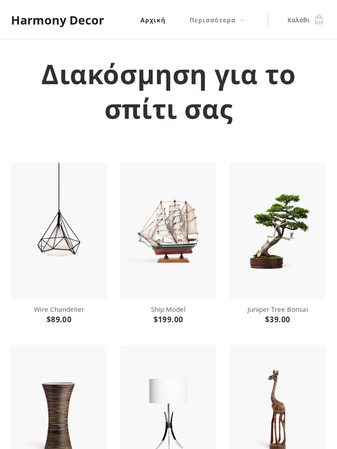 Θέλετε να πουλήσετε χειροποίητα διακοσμητικά σπιτιού; Το γοητευτικό αυτό template σας βοηθά να ξεκινήσετε ένα επιτυχημένο ηλεκτρονικό κατάστημα σε λίγα λεπτά! Η γκαλερί προϊόντων στην αρχική σελίδα αποτελεί ιδανικό σημείο για να παρουσιάσετε τα προϊόντα σας και να δελεάσετε τους πελάτες σας. Η νέα σας ιστοσελίδα είναι μόνο μερικά κλικ μακριά!