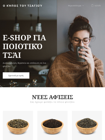 Έτοιμοι για αναζωογόνηση; Ανοίξτε ένα online κατάστημα τσαγιού μέσα σε λίγα λεπτά, χάρη στο όμορφο σχέδιο και τη δομή της ιστοσελίδας που σας έχουμε ετοιμάσει. Προβάλλετε τα προϊόντα τσαγιού σας και προσελκύστε νέους πελάτες.