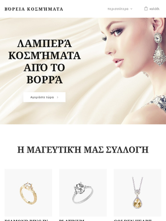 Ανοίξτε ένα ηλεκτρονικό κατάστημα για να προβάλλετε τα πολυτελή σας κοσμήματα. Το κομψό αυτό template είναι η ιδανική επιλογή για να κάνετε τα προϊόντα σας να λάμψουν. Προσθέστε περιγραφή και όμορφες φωτογραφίες των προϊόντων σας και μαγέψτε τους πελάτες σας.